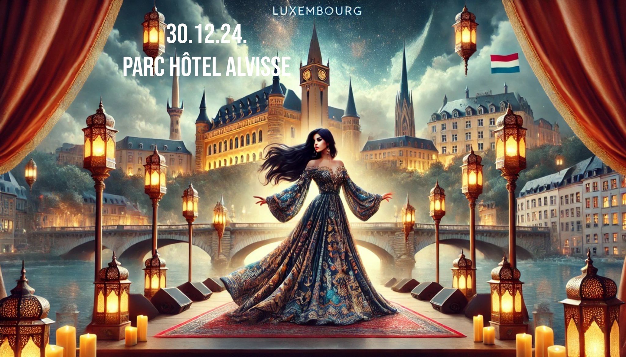 Get ready to be part of a spectacular celebration as Princess Lyna flew to us from Dubai to bring her mesmerizing performance to Luxembourg, unveils her highly anticipated album, "Arabic Nights". This exclusive event will take place in Luxembourg at the elegant Parc Hotel Alvisse on December 30, 2024.